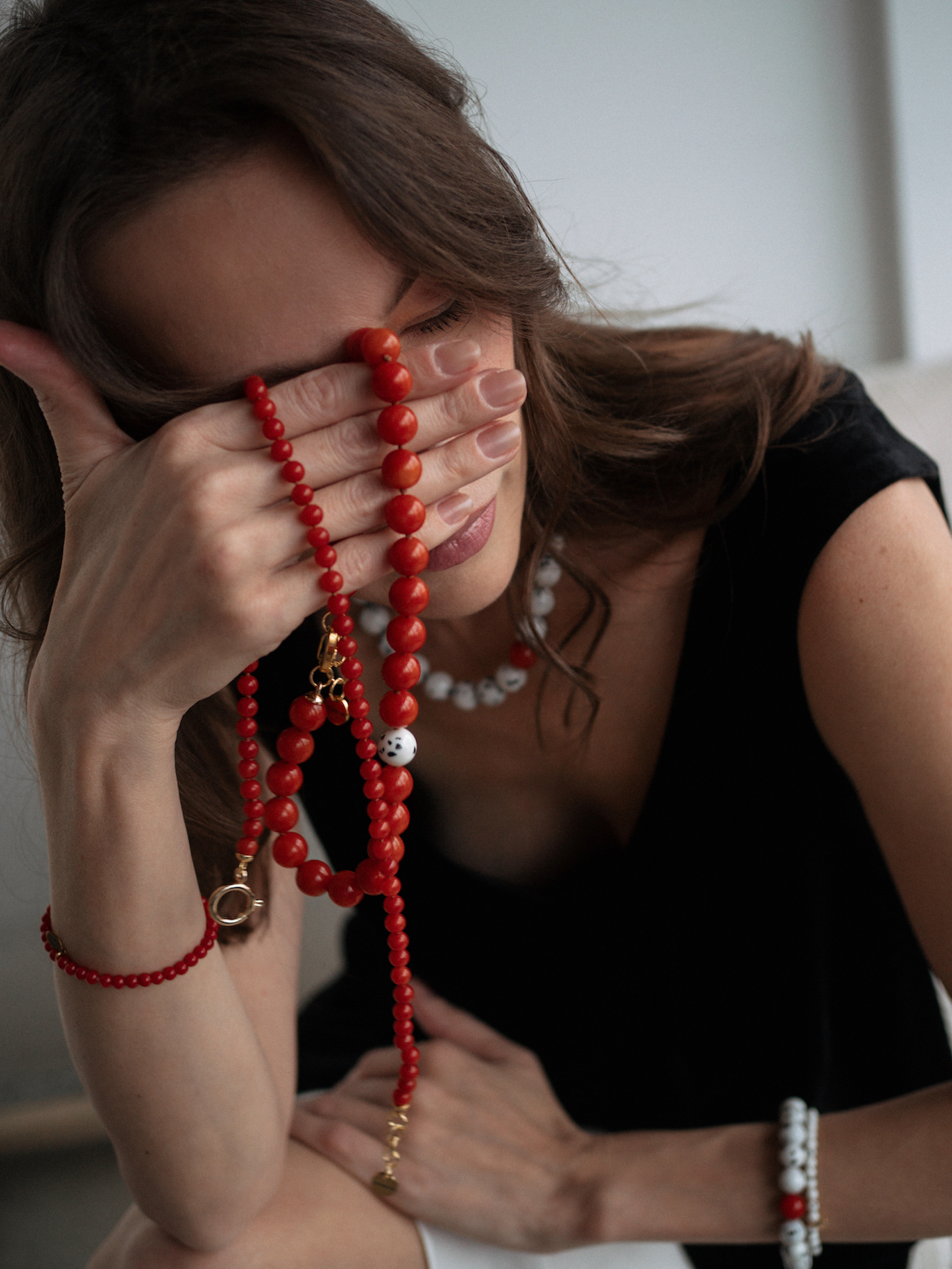 Бусы классической длины сочного рябинового цвета. Яркий акцент который добавит Вашему образу энергии