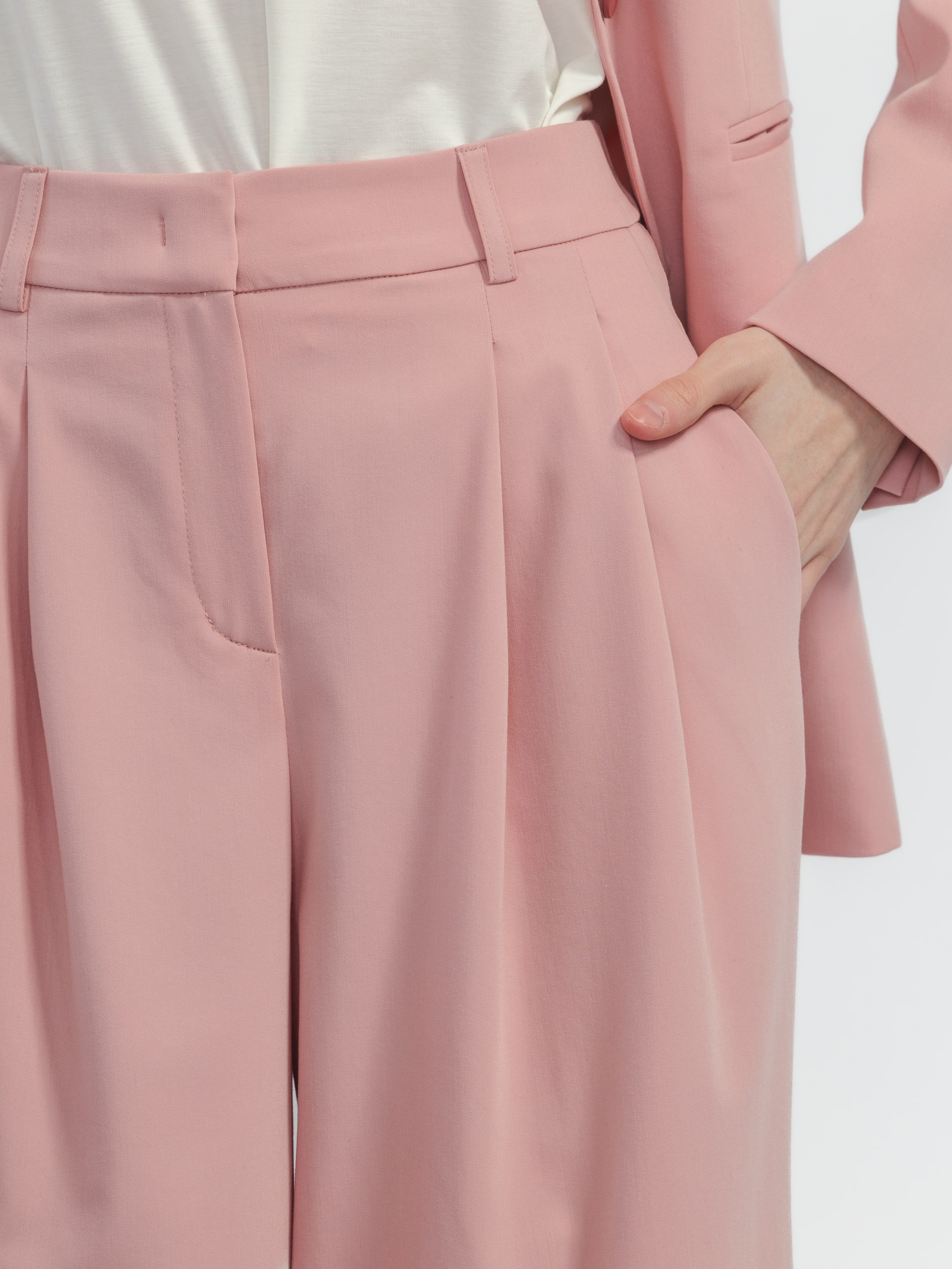 Широкие брюки палаццо дарят невесомую свободу движения и визуально вытягивают силуэт. Идеальный баланс между комфортом и женственностью — для работы и вечерних встреч.